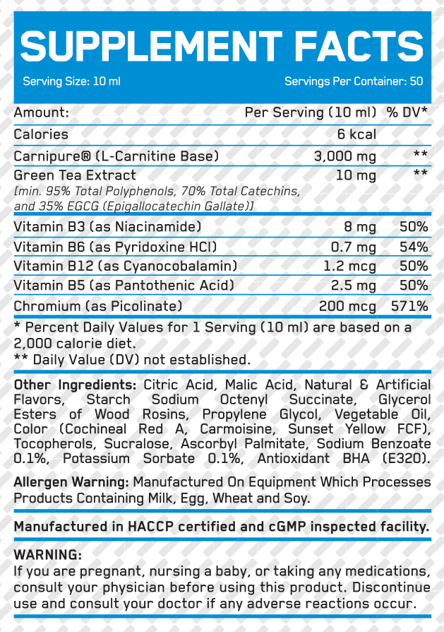 The amino acid L-carnitine inside Liquid L-Carnitine 3000mg + Green Tea transports the fatty acids through the cell membrane of the muscle cells. Its main purpose is to deliver the fatty acids to the mitochondria located inside the cell where they are going to be burned as an energy source. Carnitine helps taking out the cell any waste products generated through the process also. This transport function makes the Carnitine irreplaceable food supplement when we are talking about cardio and weightlifting with the aim for increased calorie expenditure resulting in leaner and finer body composition. The liquid form of l-carnitine is the most effective compared to those on tablets and capsules because it guarantees fast and full absorption of the active ingredient – something very important for the product to be effective.