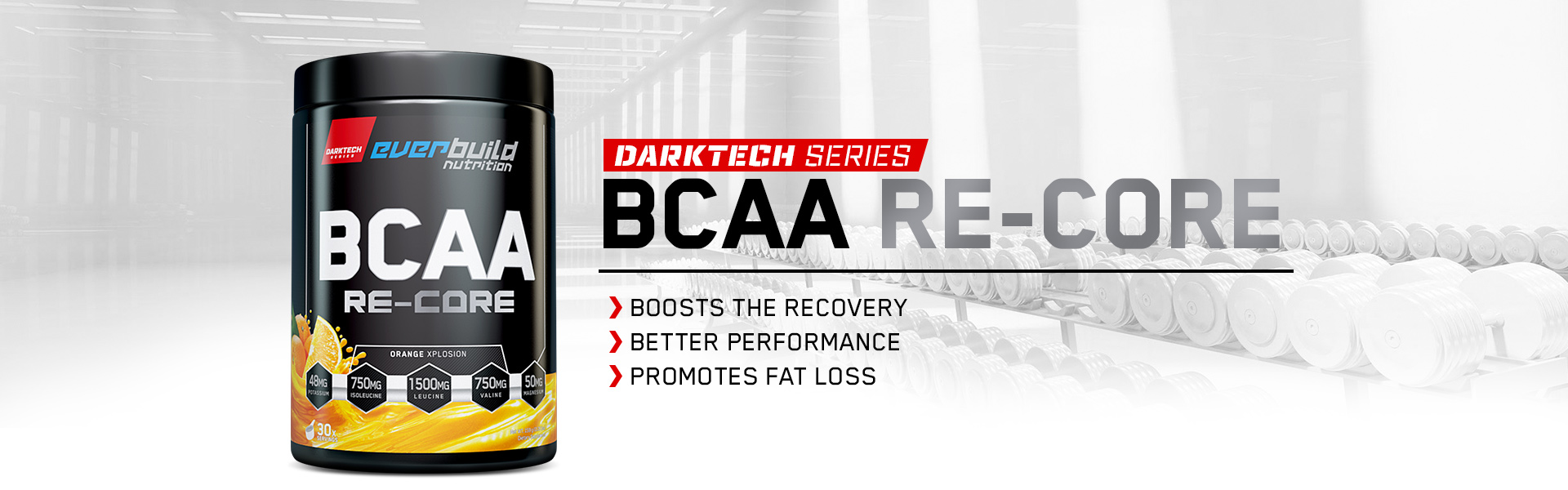 The Darktech Series BCAA Re-Core. All the essential amino acids that you need for better performance and recovery, in one product.