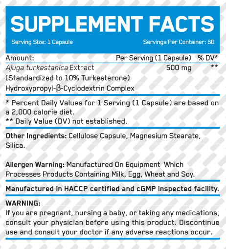 A powerful food supplement, in capsule form, containing a high-quality extract of Ajuga Turkestanica, which has countless benefits for exercisers.