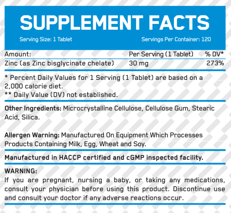 Ingredients: Zinc (as Zinc Bisglycinate (chelated))