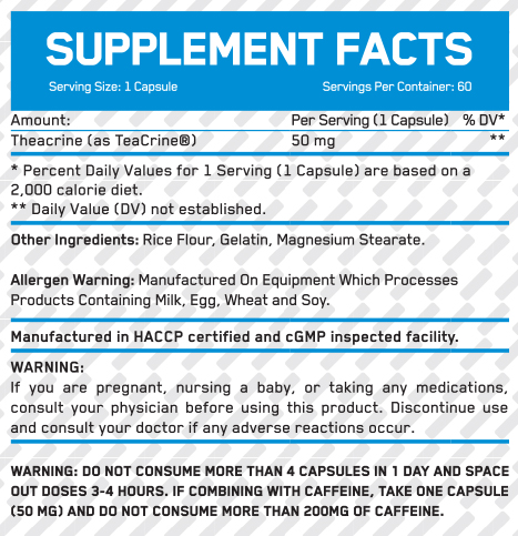 Teacrine by Everbuild Nutrition is a groundbreaking supplement, featuring a patented form of Theacrine, known as TeaCrine. This unique formulation is designed to revolutionize your energy levels, focus, and overall wellness, making it an ideal addition to the regimen of fitness enthusiasts, athletes, and anyone seeking a natural boost to their daily activities.