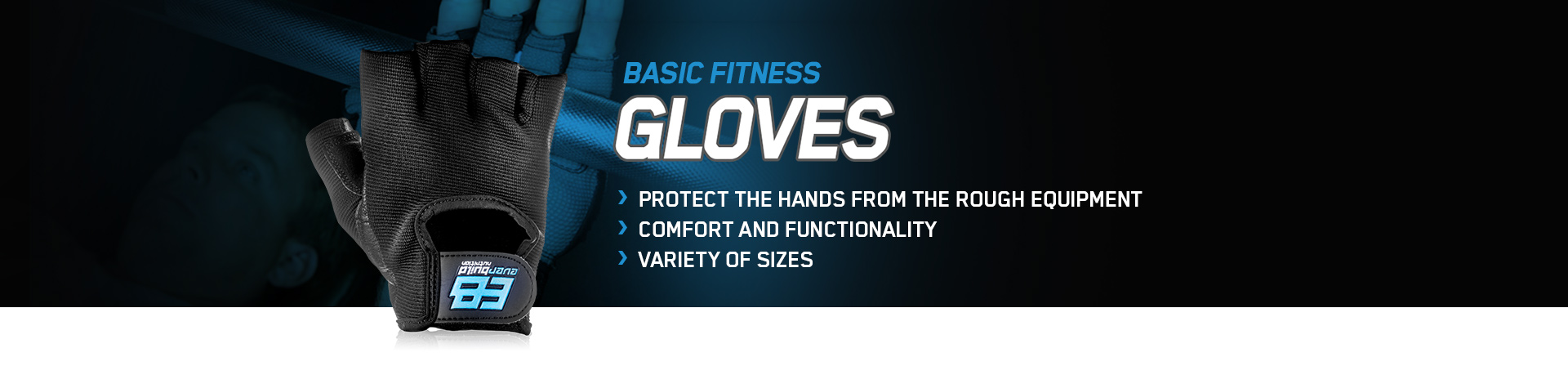 With their help, you will keep your hands from injuries and unpleasant roughness on the skin. They are offered in a variety of sizes. The Basic Fitness Gloves are elastic and light but secure a strong grip. They are made in practical black colour and are easy to fasten up around the wrist with the help of velcro patch.