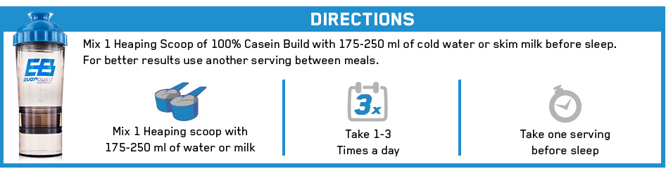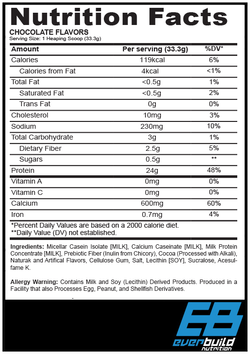 Everbuild 100% Casein is an excellent example of slow digesting protein composition made of Micellar Casein Isolate, Calcium Caseinate, and Milk Protein Concentrate. The final product keeps the advantages of the Caseins but has the potency of Whey protein making Everbuild 100% Casein Build stand out from the competition.