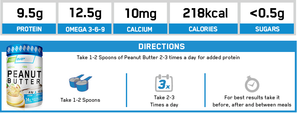 Peanut butter is a high-quality product whose protein formula is designed with attention to athletes and people training actively who seek instant energy boost. The all-natural flavor is extracted from roasted peanuts where its high protein and fiber values make it an invaluable supplementation to every dietary and muscle gain regime. Readily available and easy to consume it can be used as a spread or a dip, a snack or an ingredient.
