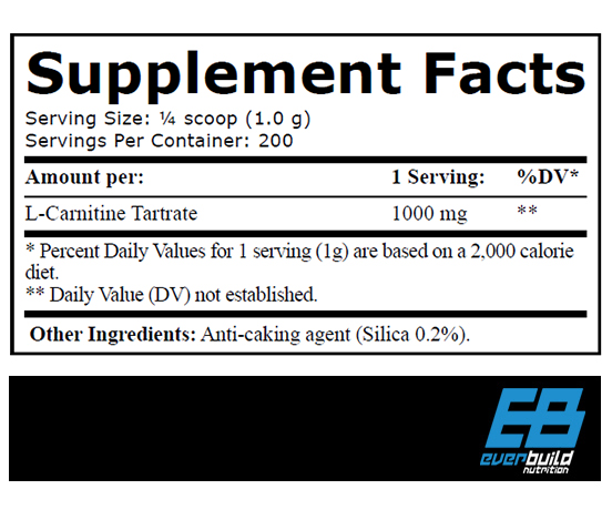 Everbuild L-Carnitine Tartrate 1000 contains a pure form of L-carnitine tartrate which helps the transport of fats in muscle cells where they are used for energy.