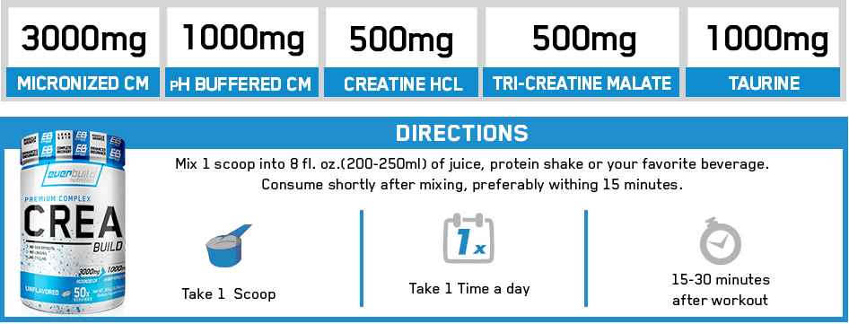 Crea Build represents creatine matrix of 4 types of creatine like them were added and 1,000 milligrams of taurine.