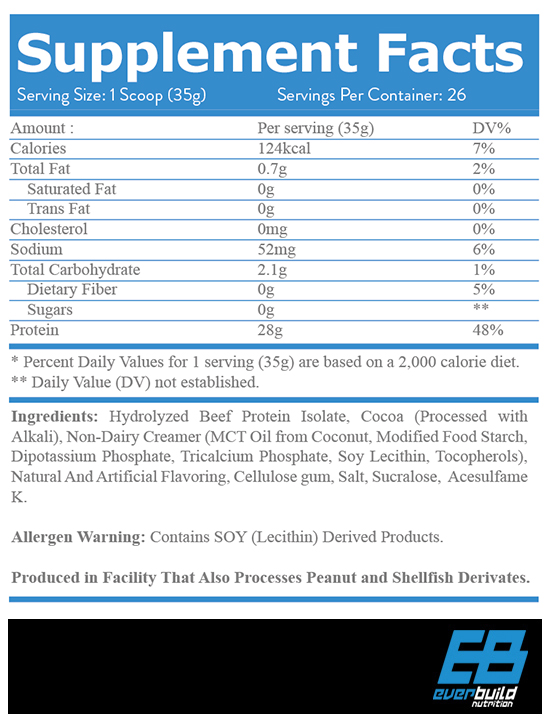 Beef Isolate is a highly concentrated protein powder with an excellent amino acid profile. It has 28 grams of protein per dose and it’s made from hydrolyzed beef protein isolate. It has NO sugar, NO lactose, NO cholesterol, NO added cheap fillers