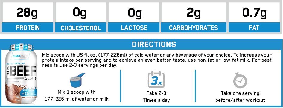 Beef Isolate comes with a great taste of double dutch chocolate, mixes instantly and has high bioavailability. Beef Isolate is your best training partner!