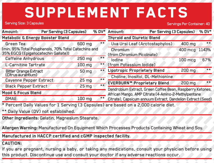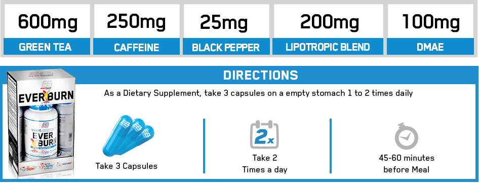 EverBurn is the most complete powerful supplement for remodeling the body composition which can be found on the market today. The unique multiphase formula of the pioneer brand Everbuild Nutrition increases the energy, focus, thermogenesis, food partitioning, metabolism and the transport of the fatty acids. Also, it reduces water retention under the skin often wrongly thought for body fat. Every ingredient in Ever Burn is specially chosen for its synergistic effects with the others with only one purpose – to achieve the optimum results possible.