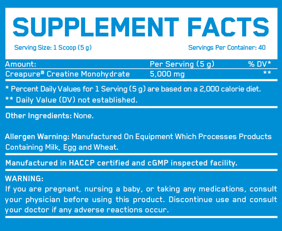 https://www.creapure.com/ ) is 100% pure product, with pharmaceutical grade micronized creatine monohydrate.