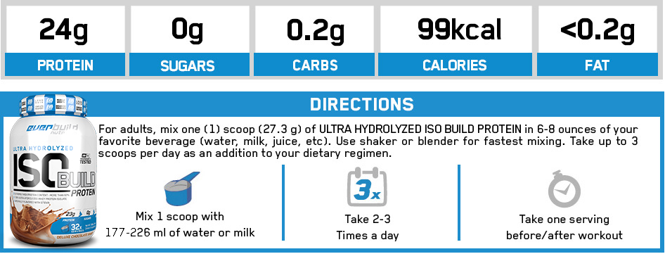 ULTRA HYDROLYZED ISO Build has the best formula on the market – more than 82% pure protein. It does not contain artificial sweeteners and each scoop provides 100 mg calcium which is within the recommended daily intake. Calcium is well known for its role in forming bone and teeth, but it also takes an essential part in many cellular processes. The product is based on the quality raw material Trusted Goodness ™, manufactured by the prestigious New Zeland brand Fonterra - a leading dairy nutrition company with millions of clients in Australia, New Zeland, China, Brazil, Chile and many other countries all over the world.