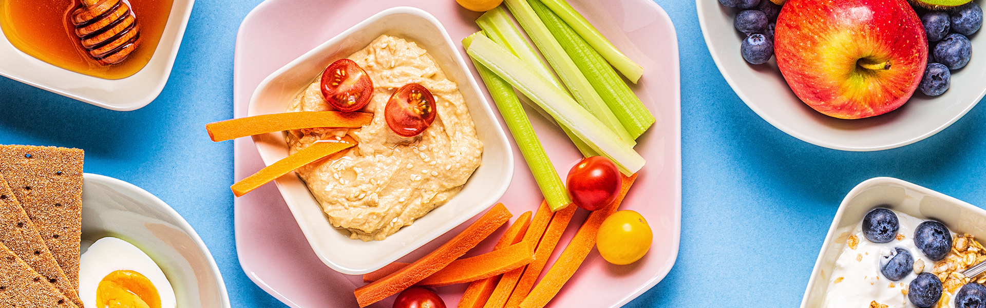 Packed with high-quality protein and dietary fiber, hummus not only helps with satiety, but also aids healthy and regular bowel movements. When eaten in combination with a rainbow of veggies, you get the full package! Choose all of the colors get creative and dip in!